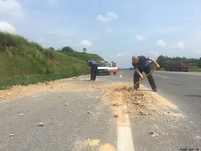 红安县公路管理局执法人员清除公路安全隐患